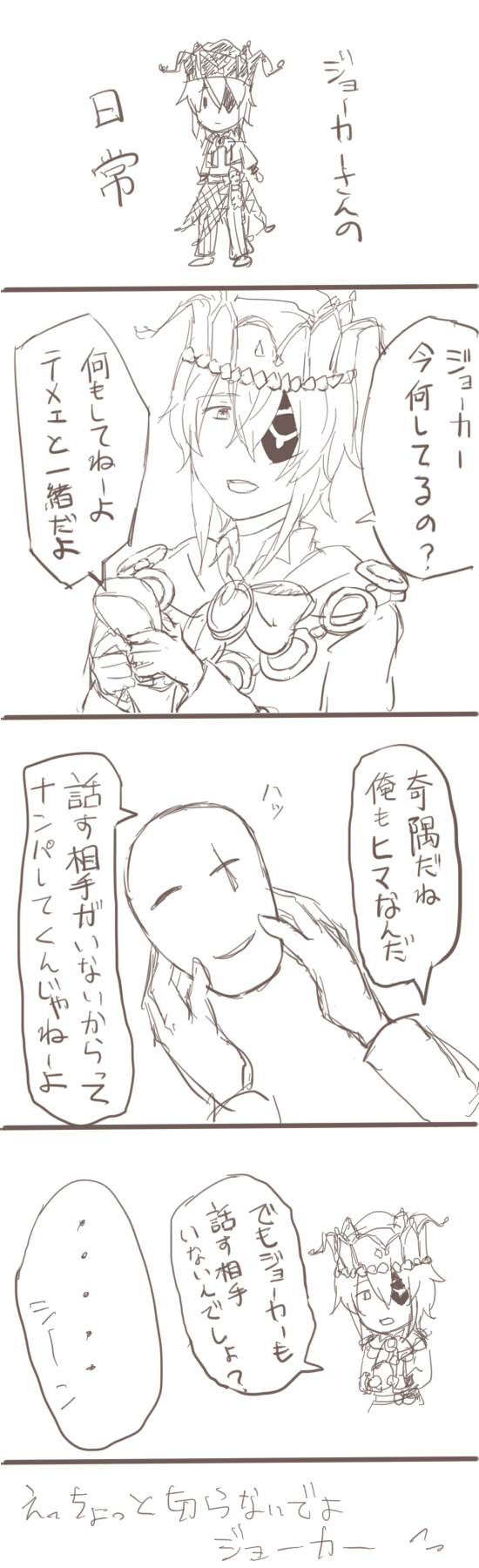 おぉジョーカーさんのスチルがあるのかと思って見に行ったらジョーカーさん無理矢理入れられてて吹いた。ジョーカーさん無理矢理入れられるってなんだか卑猥な響きですね。あとグレナイのスチルで覗いてる感出そうと無理矢理ぶった切って画面に入れてくるのは別にいいんですがこの流れの後にもう一度見るとぶった斬り多すぎて違和感感じ始めたのでやばい。スチル公開してるのって公式にマシだと判断された絵が乗ってる可能性が高いのでいろいろやばい。